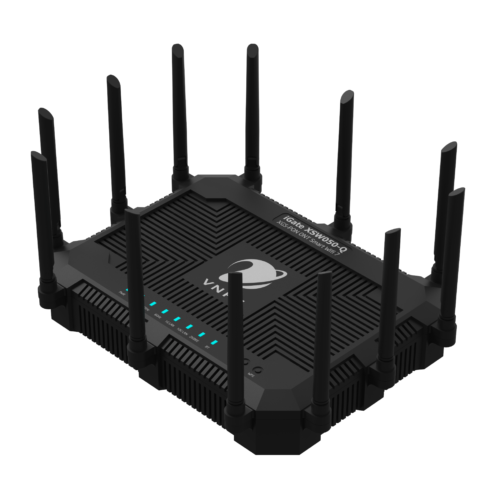 Thiết bị iGate XSW050-Q là modem quang sử dụng công nghệ truyền dẫn XGS-PON tốc độ cao, cho phép tải xuống và tải lên đến 10 Gbps. Thiết bị được trang bị 1 cổng Ethernet 10 Gbps và 4 cổng Ethernet 1 Gbps. Ngoài ra, iGate XSW050-Q còn hỗ trợ kết nối Wi-Fi 7 mới nhất, đạt tốc độ tối đa 22 Gbps trên ba băng tần 2.4 GHz, 5 GHz và 6 GHz.